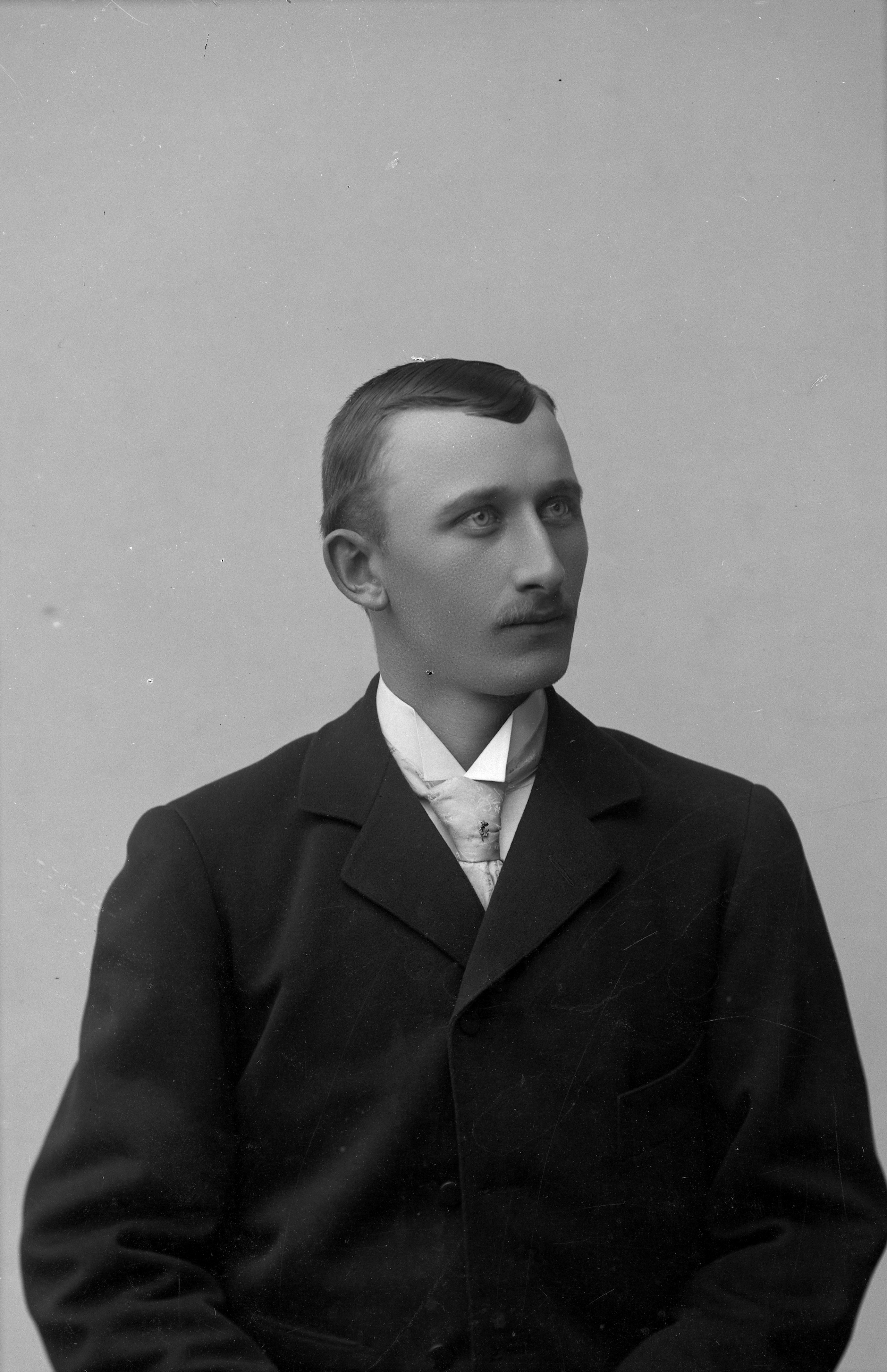 Porträtt i halvfigur av styrman Norrman.
