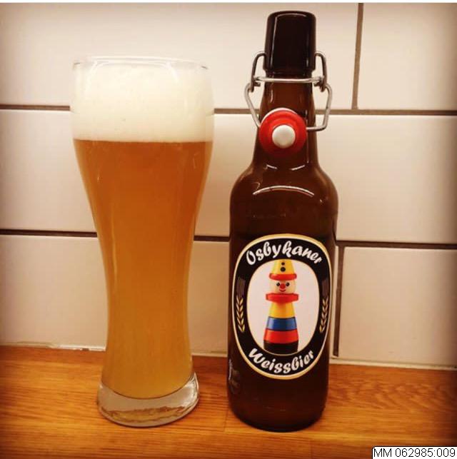 Öletikett, Osbyweiss. Formgivare och bryggare Göran Eriksson.