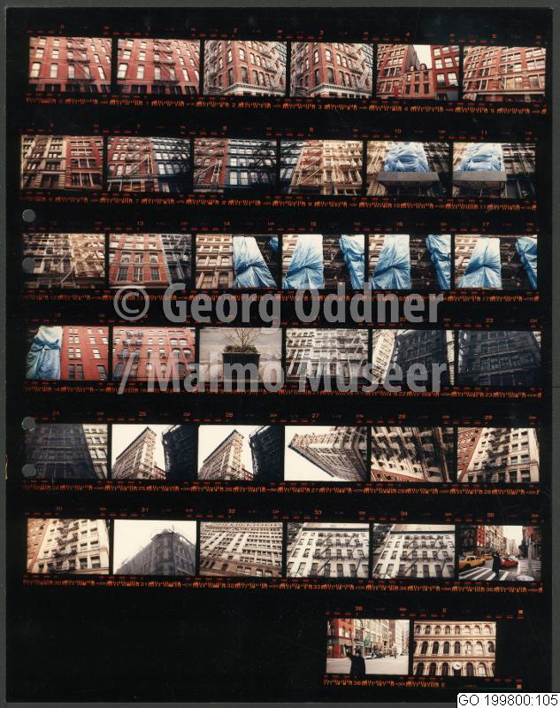 GO 199800:105 :: bil, bostadshus, byggnadsställning, kvinna, stadsgata, storstäder, taxi