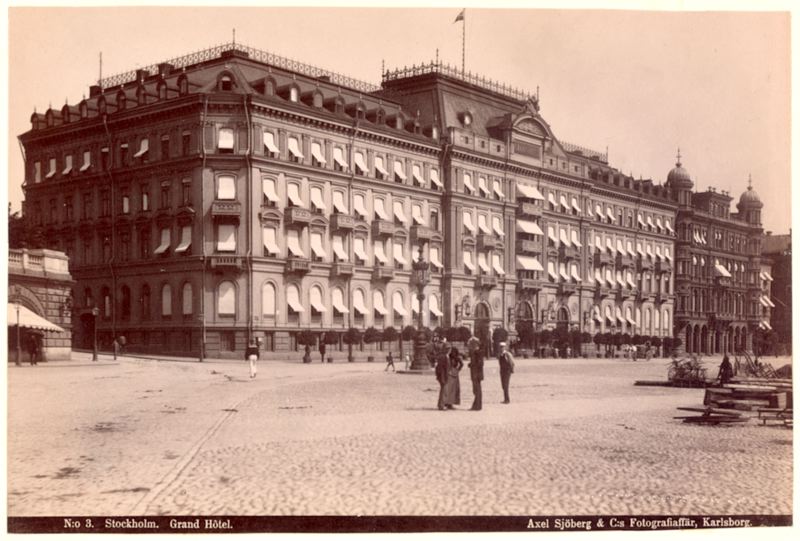 Tryckt text på framsidan: N:o 3. Stockholm. Grand Hotel. / Axel Sjöberg & C:s Fotografiaffär, Karlsborg. /