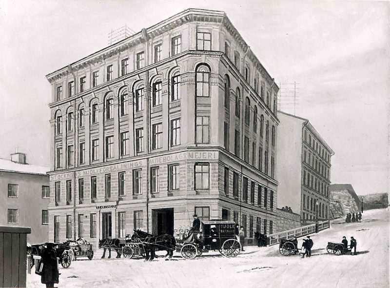 Bild. Bebyggelse i Stockholm. Stockholms Mjölkförsäljnings Aktiebolags Mejeri på 1890-talet.