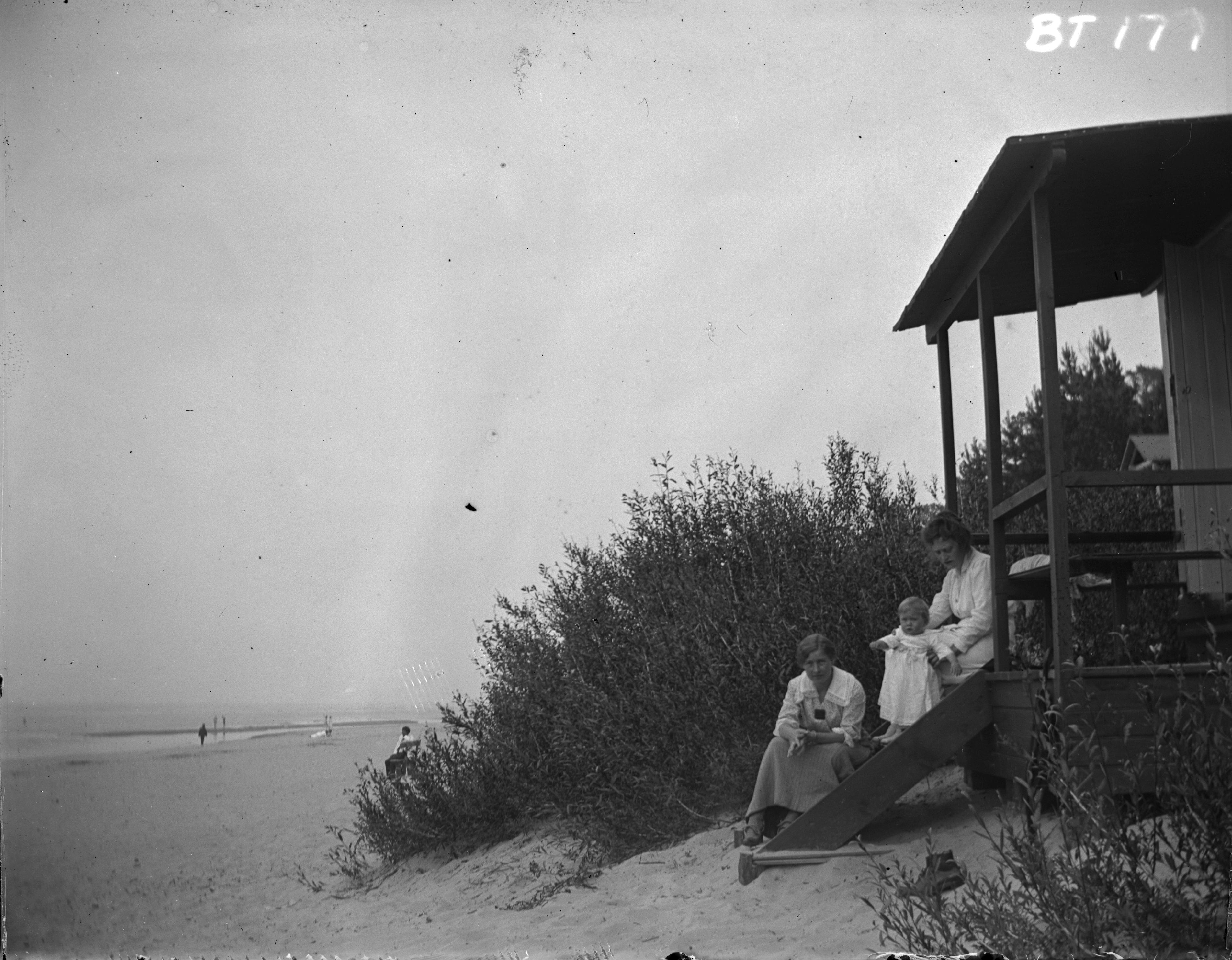 Omkring 1910? Två kvinnor och en liten flicka på stranden.