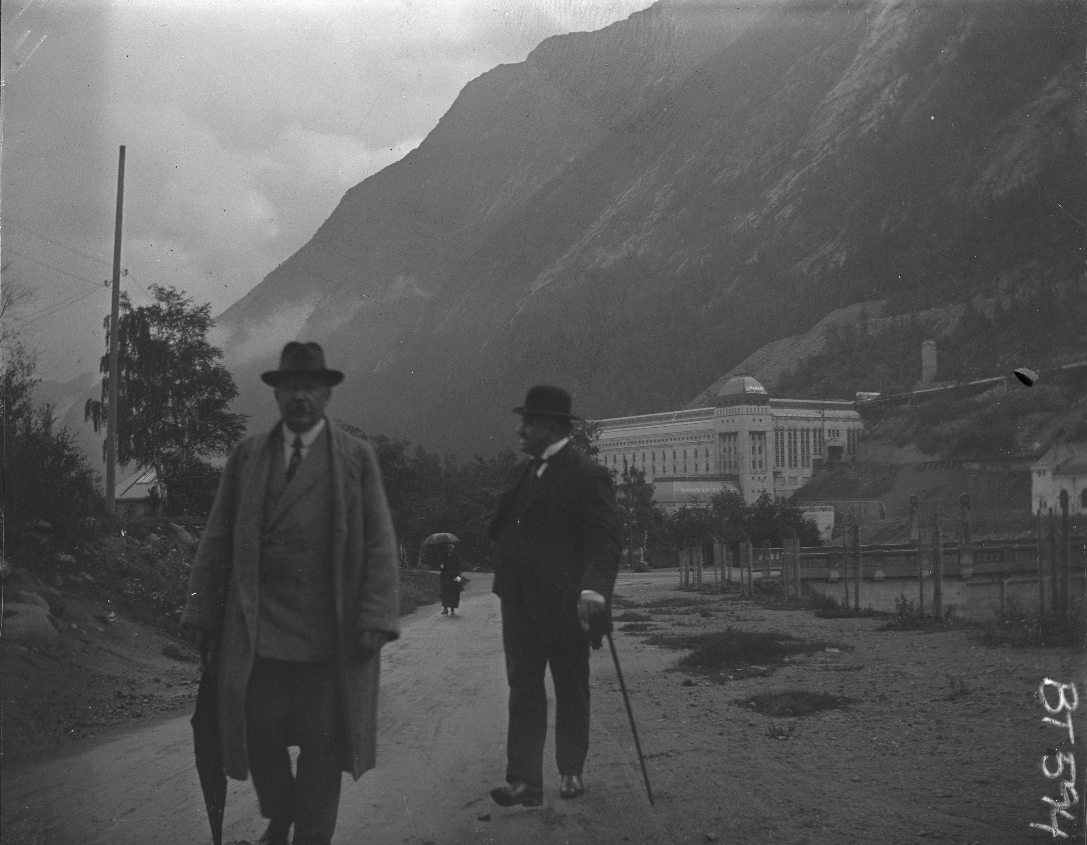 1910. Fjällandskap. Två män vid en landsväg.