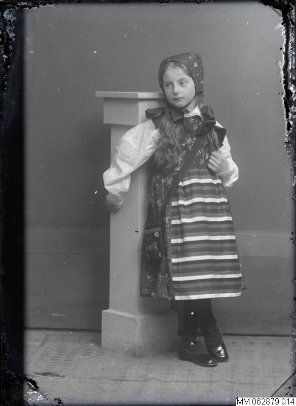 MM 062879:014 :: barn, flicka, folkdräkt, piedestal