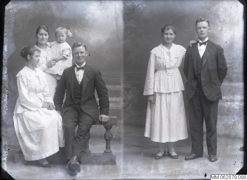 - Grupporträtt på Oscar Andersson och hans fru Linnea sittandes, Kickan och Frida (barnet) ståendes. Dubbelt porträtt. Med negativ fanns anteckningen "Oskar och Linnea, Frida och Kickan, Linnea och Oskar". Okänt datum