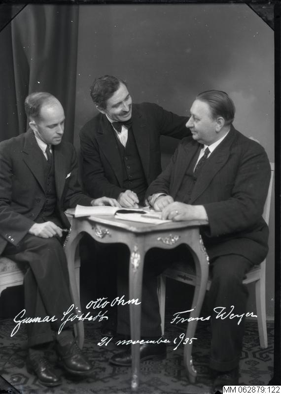 - Grupporträtt på Gunnar Sjöstedt, Otto Ohm och Frans Weyer. Skrift på negativ: Gunnar Sjöstedt, Otto Ohm, Frans Weyer 21 november 1935. Låg i låda med anteckningarna "samtliga fotografer höll sammanträde här den 21-10-1935, Floo F. Weyer 3-, Skånebergs Palmgård" (svårläst).