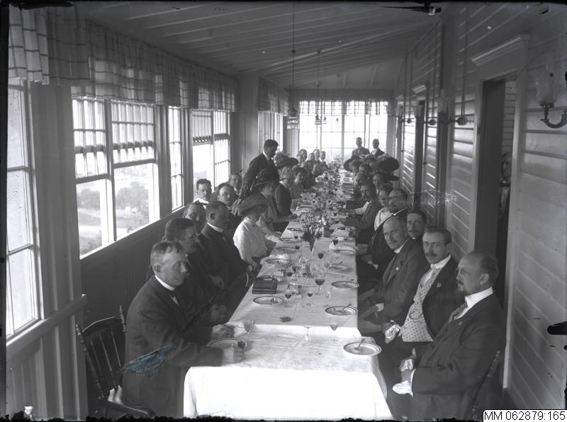 MM 062879:165 :: kvinna, kvinnor, grupporträtt, långbord, man, män, middag