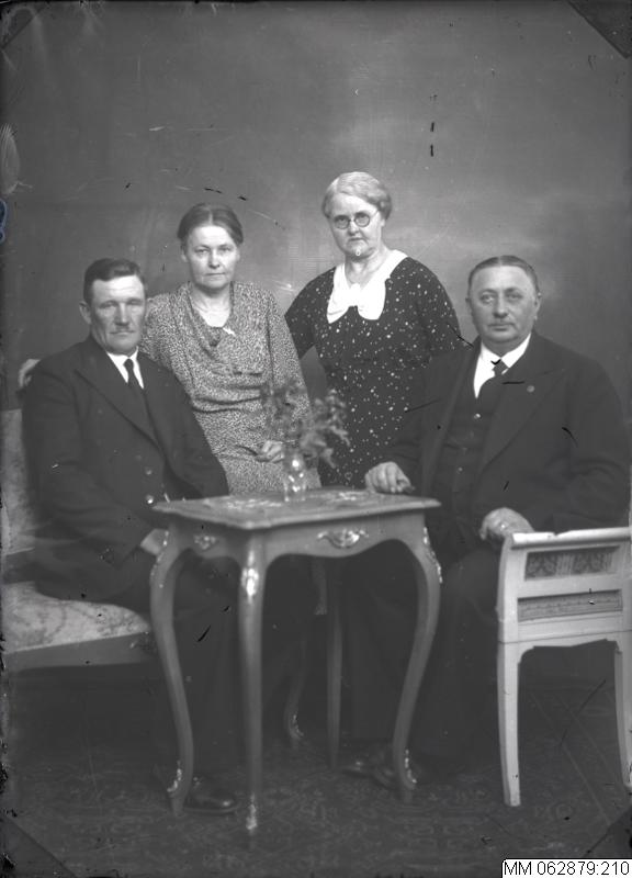 Grupporträtt på Frans Weyer, hans fru Hanna (från höger) och sällskap. Låg i låda med skriften "Weyer 1947, Helsingborgsvägen 13". Datum okänt.