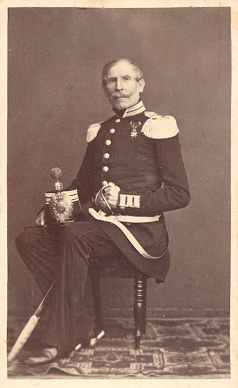 Fotografi av en sittande man iklädd en militär uniform och med en sabel.