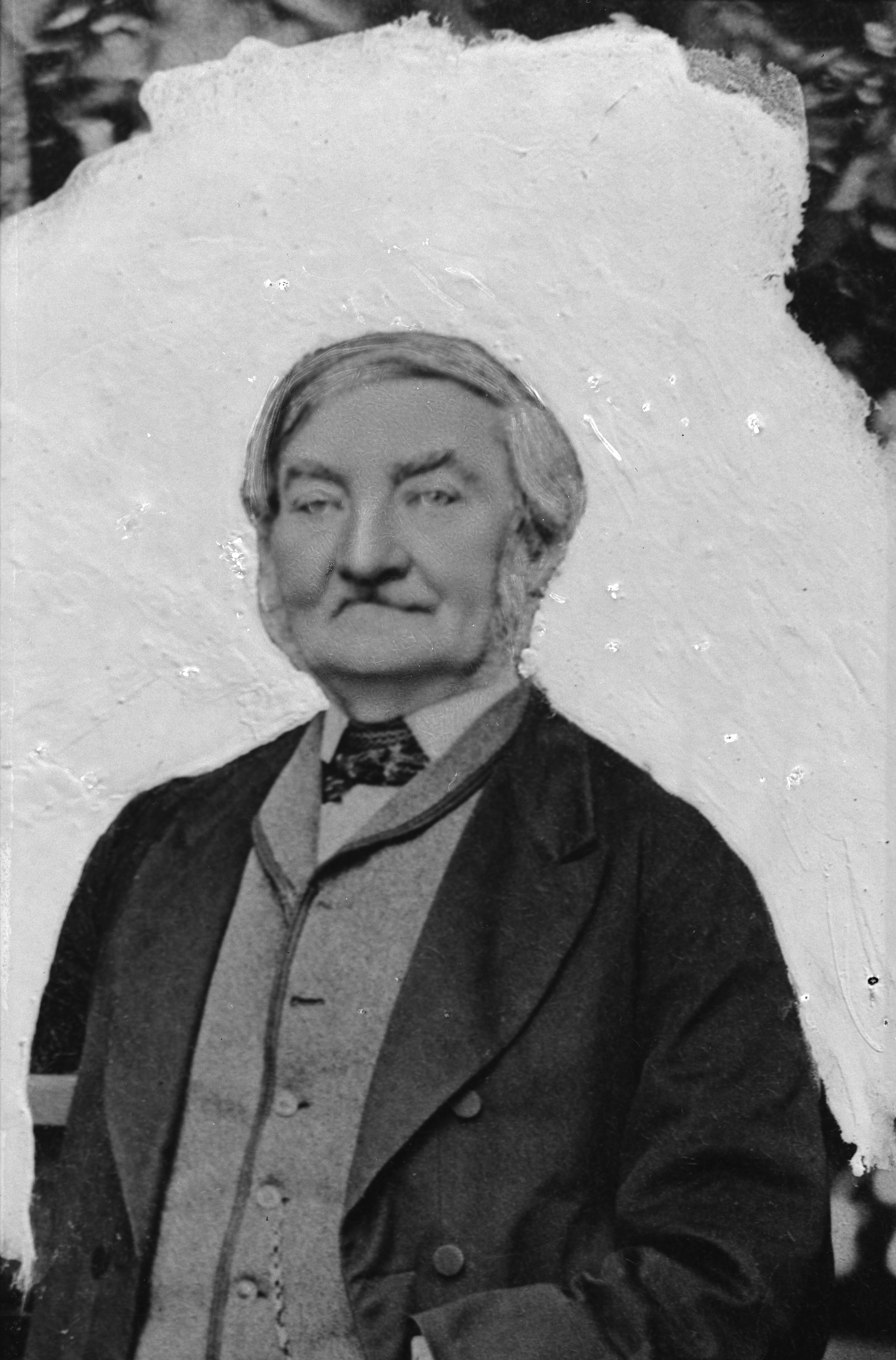 Porträtt i halvfigur av oidentifierad man. Reprofotografi beställt av apotekare Isidor Nordin.