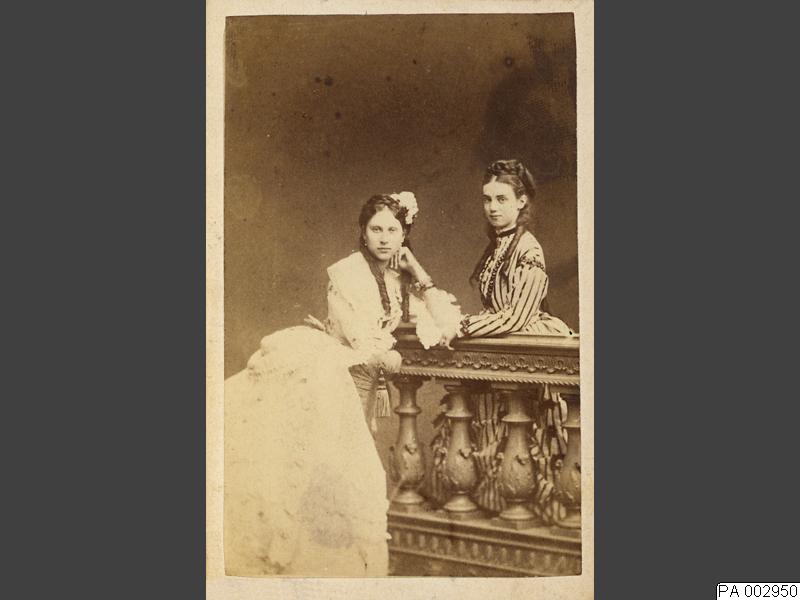 Visitkortsfotografi. Porträtt av drottning Louise av Danmark, fotograferad med okänd kvinna.