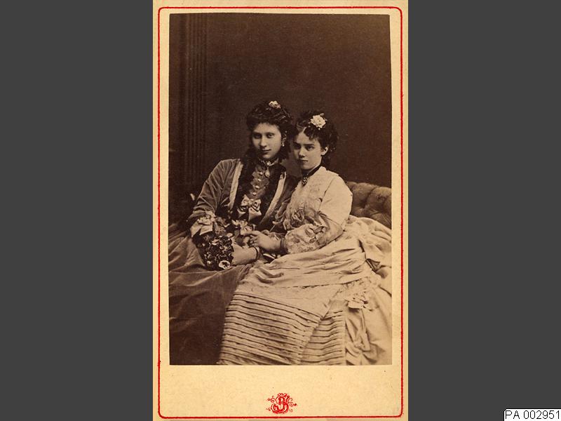 Visitkortsfotografi. Porträtt av drottning Louise av Danmark, fotograferad med okänd kvinna.