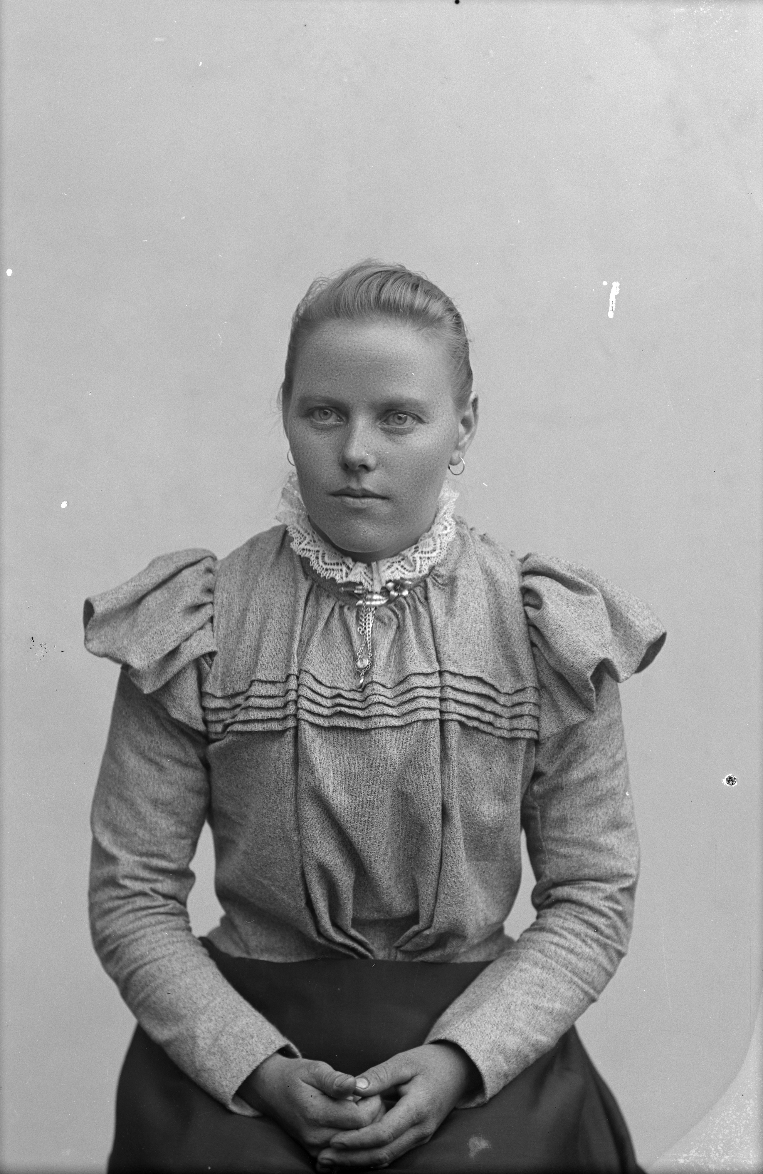 Porträtt i halvfigur av Hulda Andersson, student på Hvilan.