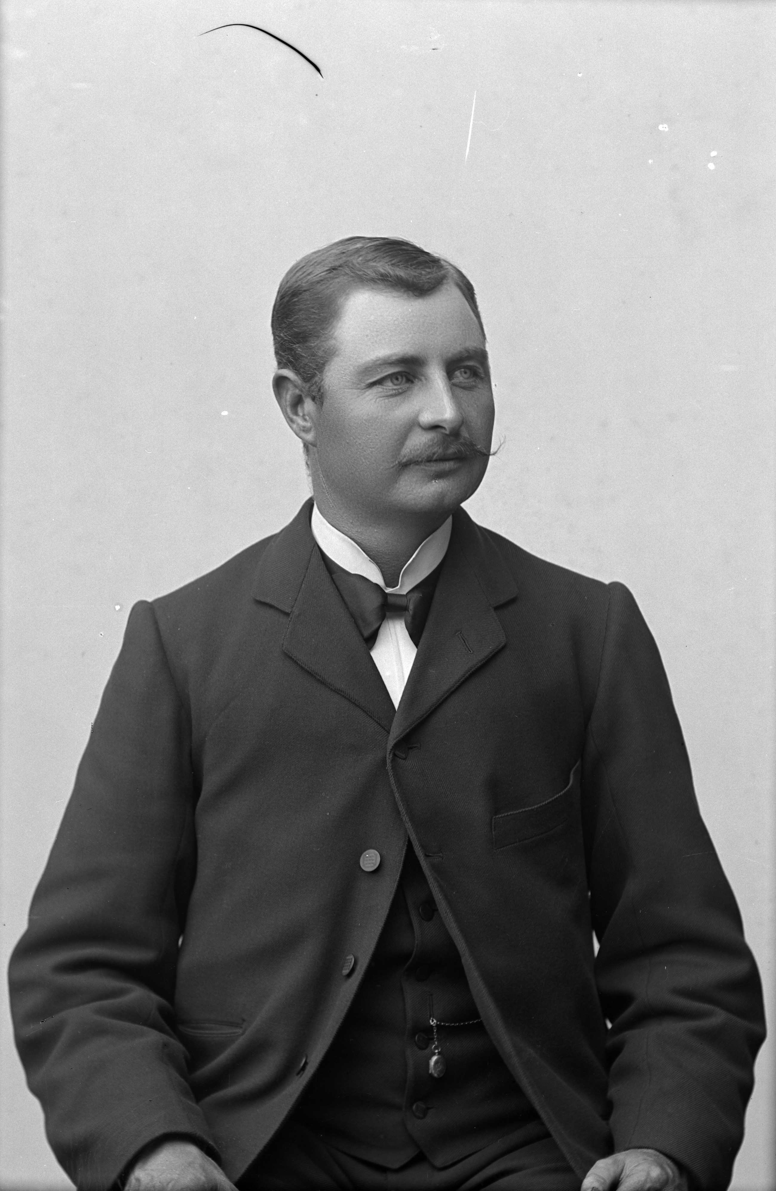 Porträtt i halvfigur av styrman J. E. Österlund.