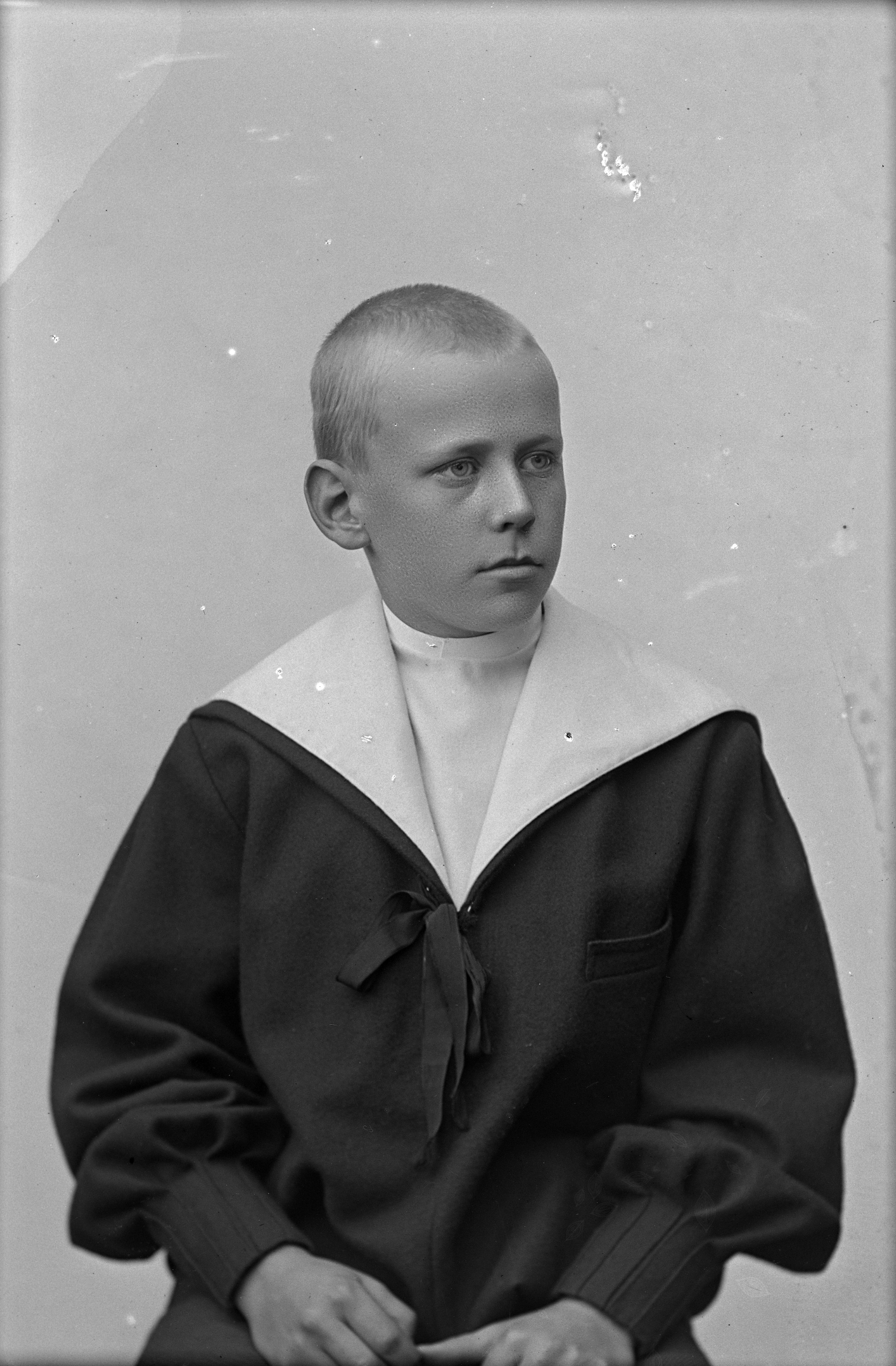 Porträtt i halvfigur av Gustaf (Gösta) Wallenstrand, iklädd sjömanskostym.