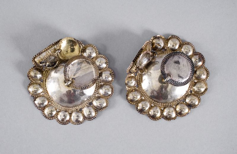 1 par, silverplåt, pressad, förgylld med tre nedhängande runda blad på
