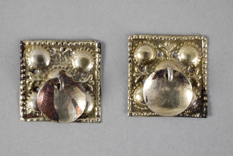 Bältesbeslag, 2 st., silver, förgyllt, pressat.