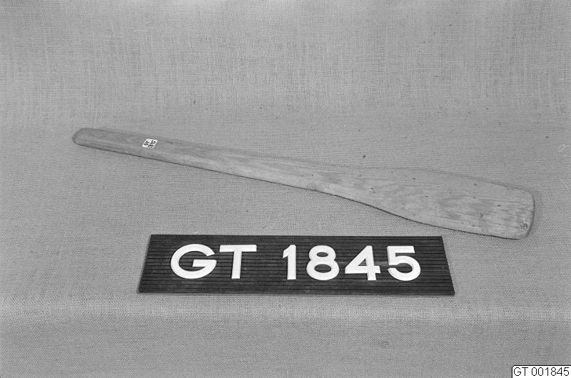 Långt, rakt klappeträ i form av bräda med uttäljt, långt, rakt, runt