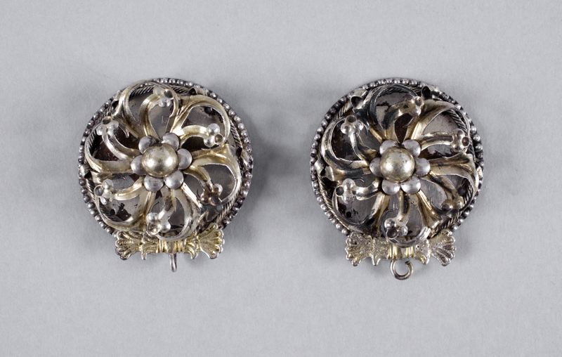 Bröstspännen, 1 par, silverplåt, pressad, förgylld. Stämplar: PN.