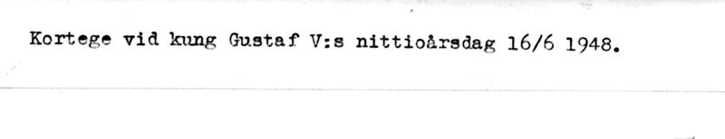 Text på baksidan: Kortege vid kung Gustaf V:s nittioårsdag 16/6 1948.