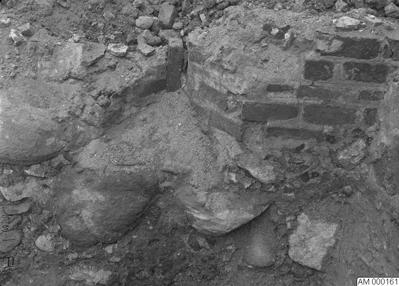 Utomhusbild som visar Malmöhus, södra längan, östra gavelmuren. Sydost hörnet, detalj.