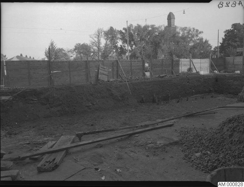 Utomhusbild som visar Malmö, grundgrävning. Ett staket runt grävningen.