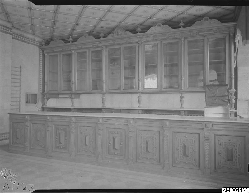 Inomhusbild som visar Malmö kvarter 52 Rosen, Torvgatan 1, Fritz Hanssons bageri, butiksinredning.