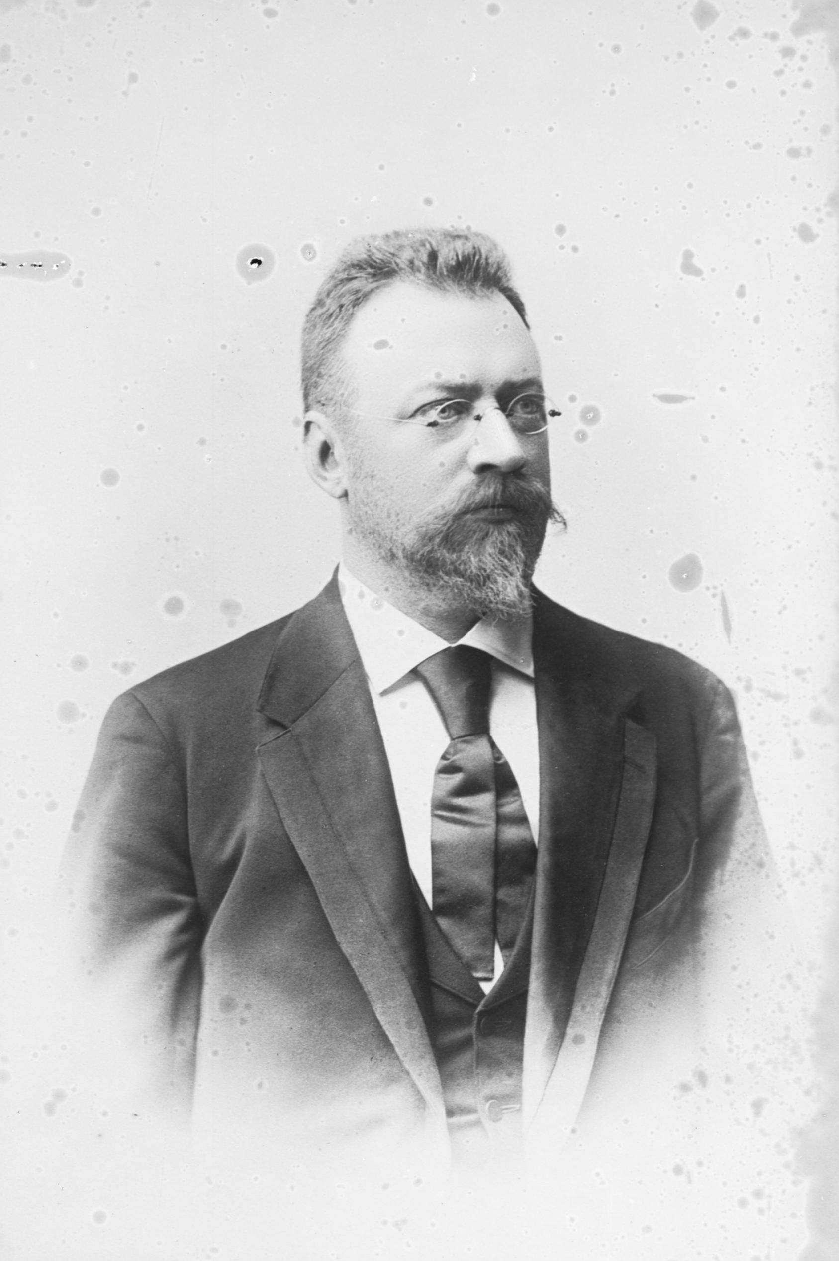 Porträtt i halvfigur av oidentifierad man. Reprofotografi beställt av apotekare Isidor Nordin.