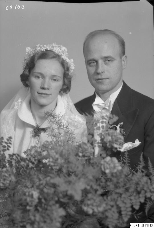 CO 000103 :: porträtt, brud, bröllop, man, blommor, brudbukett