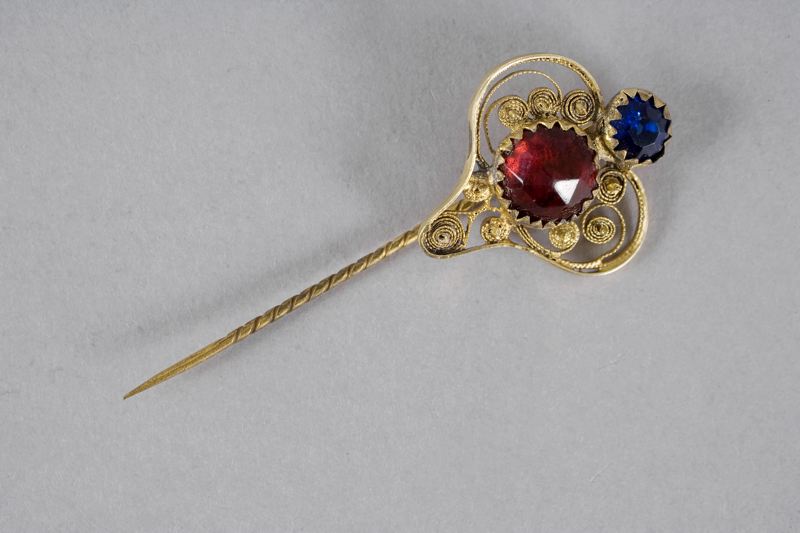 Silver, förgyllt, filigran, en röd och en blå glassten.