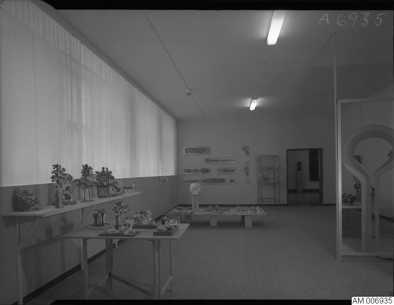 Bild som visar glas och keramik i fria former, tillfällig utställning Malmö museum, 19 november till 25 december 1968. I samarbete med Röhsska museet, Göteborg.