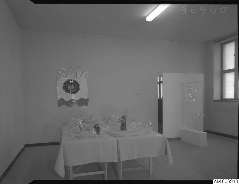 Bild som visar glas och keramik i fria former, tillfällig utställning Malmö museum, 19 november till 25 december 1968.