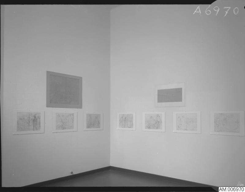 Bild som visar C. F. Hills teckningar, tillfällig utställning, Malmö museum 20 juni - 25 augusti 1968.