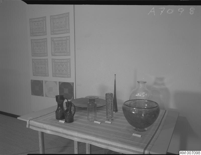 bord, glasföremål, bonader, väggbonad, konst, museum, museer, utställning, väggbonader, utställningar, glas, bonad