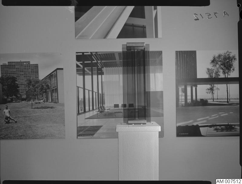 Bild som visar tillfällig utställning på Malmö museum 10-27 september 1970. Objektiv arkitektur. I samarbete med Die Neue Sammlung, München.