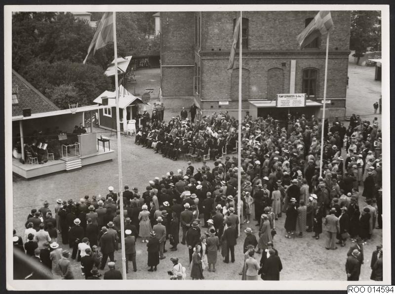 ROO 014594 :: klippan, 1939, 1930-tal, invigning, utställning, högtidlig, folksamling, utställningar, orkester, öppnande, folksamlingar, orkestrar