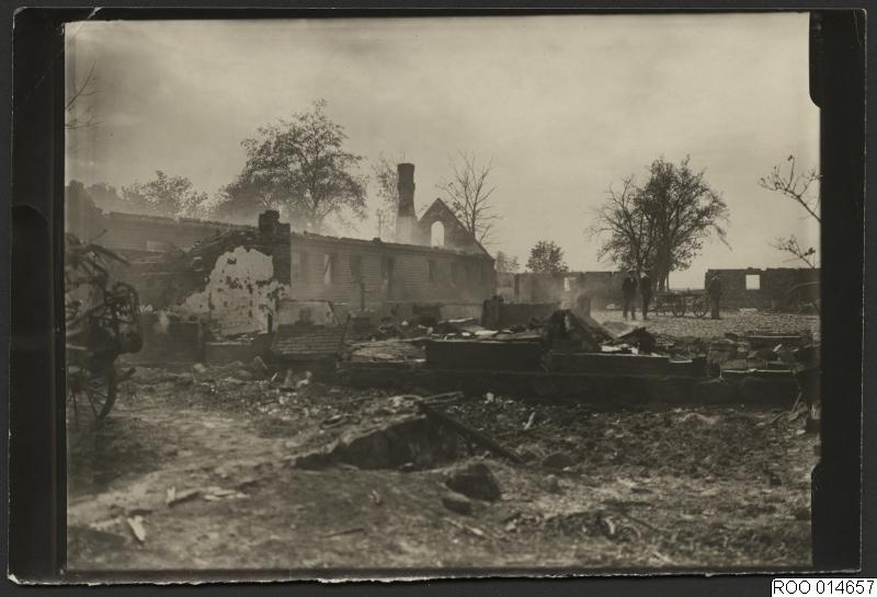 - Utomhusbild från den orkanlika stormen och eldsvådan som utbröt hos Erik Larsson, Mossheddinge nummer 6 i Esarps socken. Branden spreds snabbt till Gunnar Sivertssons gård, 800 meter bort. Båda de ståtliga gårdarna brann ner till grunden.