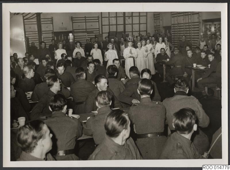 - Luciauppvaktning för Malmömilitären. Landstormslottor uppvaktade som lucior de i Malmö förlagda militärförbanden tidigt på Luciadagens morgon. Bilden visar uppvaktningen i matsalen.