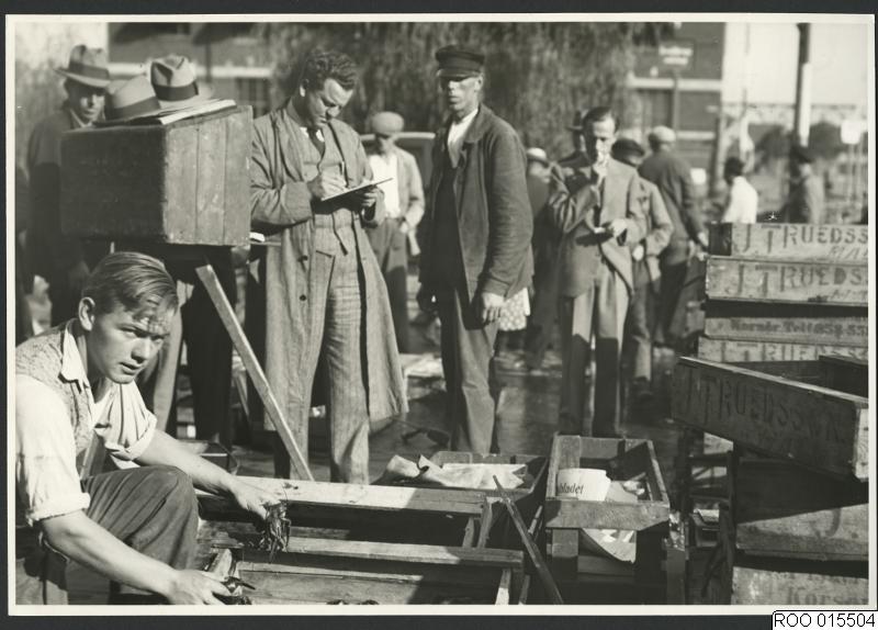 ROO 015504 :: fiskehamn, lådor, låda, man, kräfta, fiskehamnar, kräftor, män