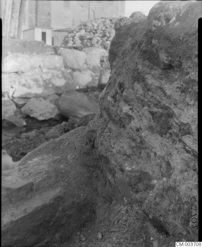 byggnader, malmöhus, malmö museer, slottsholmen, schaktvägg, 1934, schakt, 1934-1937, detalj, utgrävningsarbete, grävningar, schaktväggar, grävning, utgrävningsarbeten, utgrävningar, 1930-talet, hus, malmöhus slott, byggnad, slott, utgrävning, detaljer