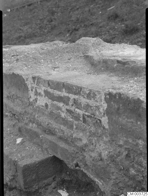 byggnader, malmöhus, malmö museer, slottsholmen, mur, 1934, 1934-1937, långmurar, murar, utgrävningsarbete, grävningar, långmur, grävning, utgrävningsarbeten, utgrävningar, insida, 1930-talet, hus, malmöhus slott, byggnad, slott, insidor, utgrävning