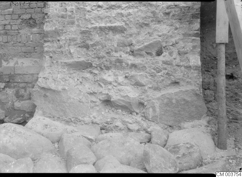 byggnader, malmöhus, malmö museer, slottsholmen, gallerimurar, 1934, 1934-1937, grunder, detalj, utgrävningsarbete, grävningar, grävning, gallerimur, utgrävningsarbeten, grund, utgrävningar, porttorn, 1930-talet, hus, malmöhus slott, byggnad, slott, utgrävning, torn, detaljer