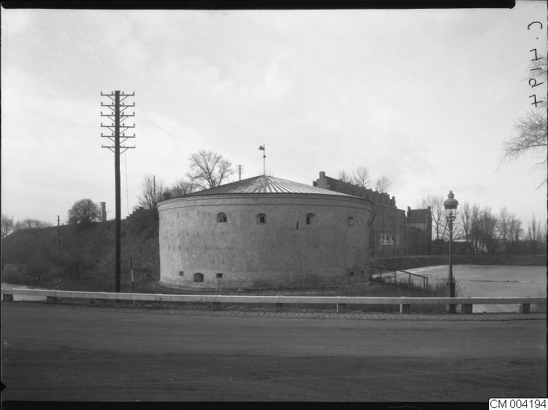 byggnader, malmöhus, vallgrav, 1940-talet, västra tornet, väg, kraftledning, 1945, kraftledningar, malmöhus slott, byggnad, slott, vallgravar, vägar, torn