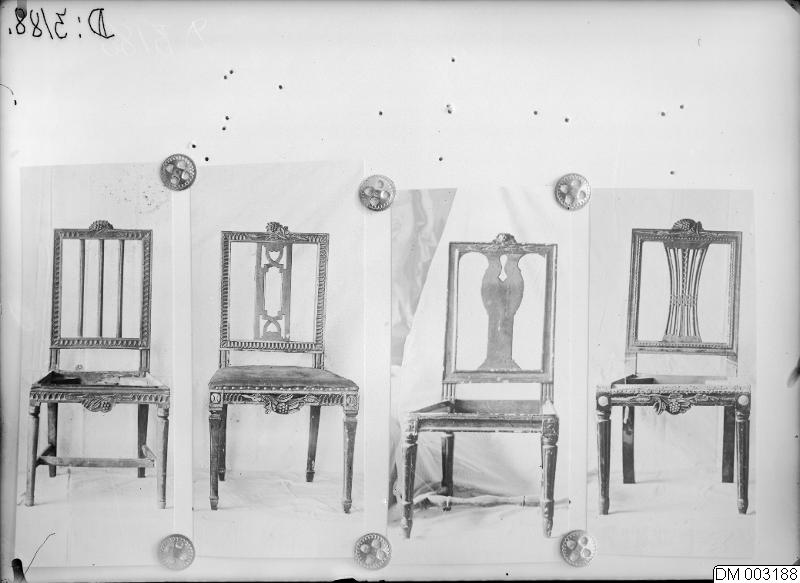- Bild som visar Malmö museum, äldre stolar 1700-talets senare del. Gustavianska. Disp. Bergströms fotosamling.
