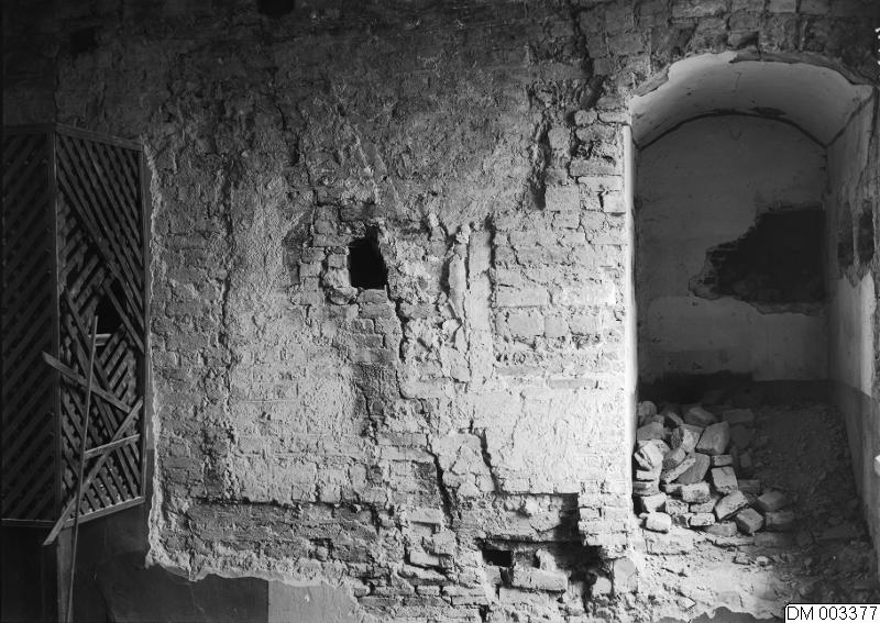Bild som visar Malmöhus, tredje våningen. Västra sidan. Gluggar väggen och en nisch.