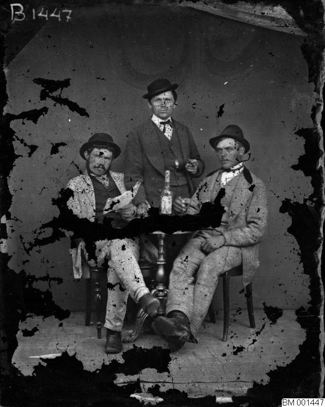 Ett ateljé porträtt av en stående och två sittande herrar.