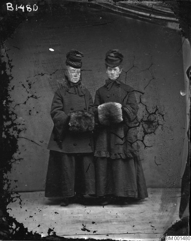 Ett ateljé porträtt av två stående damer.