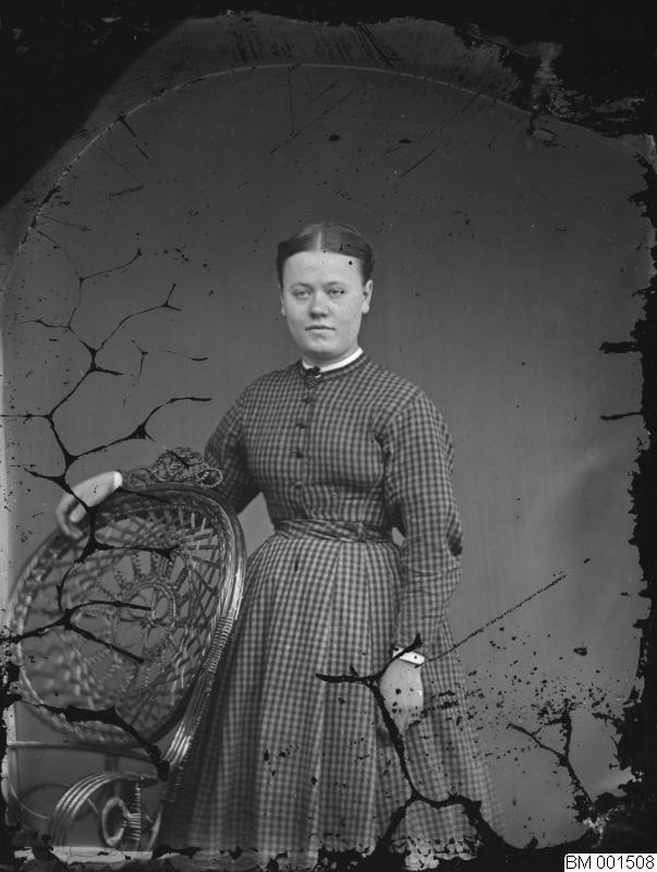 Ett ateljé porträtt av en stående dam, halvfigur.