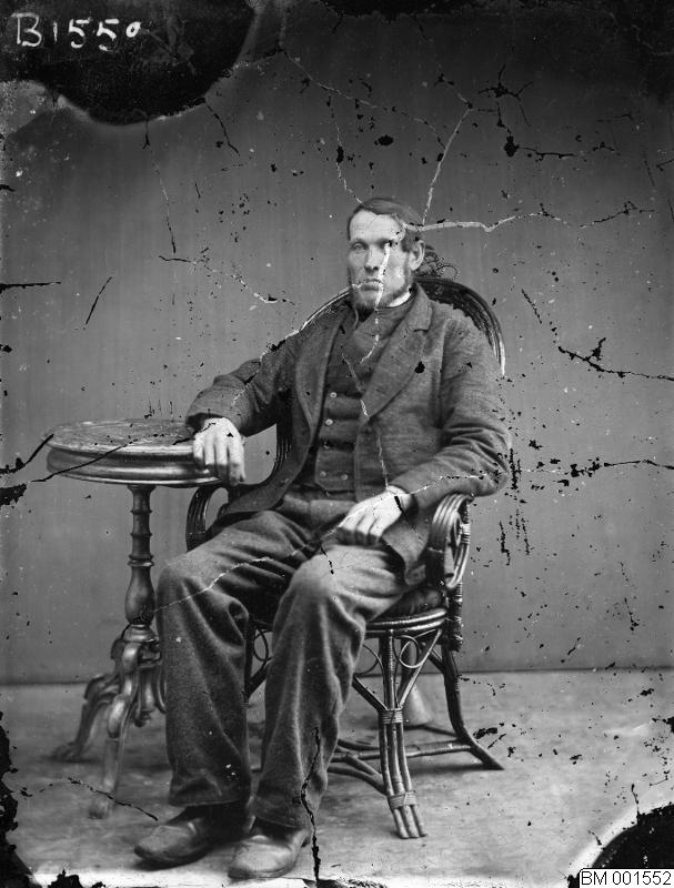 Plåtsamling från Ängelholmsfotograf. Porträtt. Sittande herrar. Helfigur. Man i kostym.