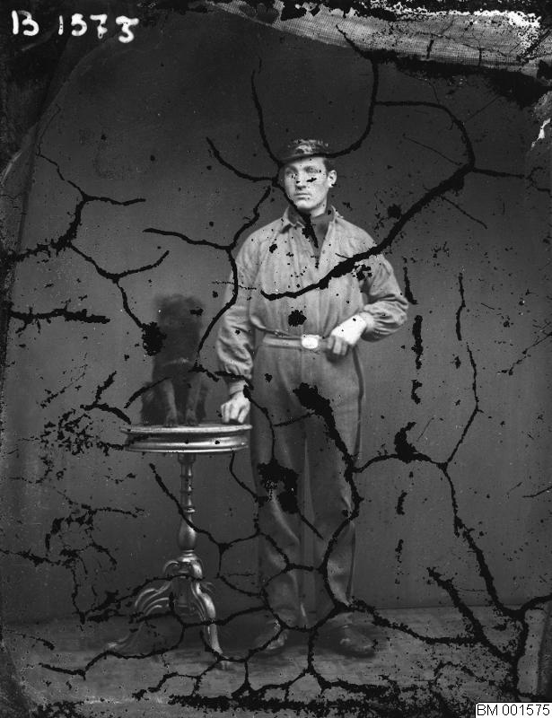 Plåtsamling från en Ängelholmsfotograf. Porträtt. Stående herre. Helfigur. Klädd i kostym.